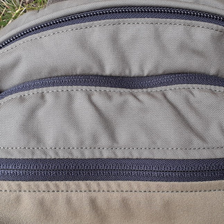 The third pocket (images 3 & 6) at the bottom featuring a double zip is for a small horizontal pouch, again with the exterior of the pouch manufactured out of stretch material using a small single zip (25 cm across). Inside of the pocket in the base are two drainage holes which open into the interior of the largest main pocket.