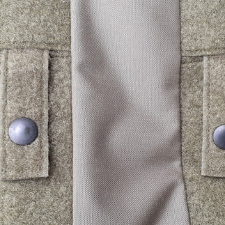 The second pocket (images 2 & 5) with a single zip (22 cm across) is a medium sized pocket, the front of which is made using stretch material enabling operators to put slightly larger bulky items in here.