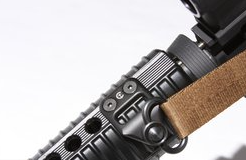 Attaching a sling to a rifle enables the operator to be able to safely stow their rifle when using their secondary weapon, using their hands to open doors etc. Mounting options for a sling swivel number in their hundreds from a wide range of manufacturers and various designs some near identical, some of new and old designs, ultimately their role is to do one thing, allow a sling to be connected to the rifle. The Stag Arms Side Sling Swivel was one item that was used on the traditional M4A1 to enable a sling to be mounted towards the front of the rifle, without taking up real estate on the handguard. Manufacturers range from; Colt, Stag Arms, Magpul, Viking Tactics etc... and designs vary as shown in the images below.