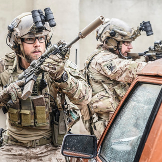 Civilian / Low profile clothing is generally used by elements of traditional military forces or Special Forces when operating in civilian areas. Traditionally when seen, personnel are escorting political or military figures from location A > B whilst providing protection. Bulky plate carriers are ditched in favour of low profile chest rigs of carriers due to close confines and vehicle work. Civilian clothing sometimes worn by Special Forces are designed to enable them to blend in with indigenous forces such as when US forces were operating jointly with the Mujahedeen fighting in Afghanistan. PMCs (Private Military Contractors) also utilise civilian / low profile gear.